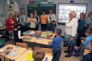 Konverentsi üks osa oli visiidid Tallinna koolidesse. Käisin koos välismaalaste rühmaga Kesklinna vene gümnaasiumis. Seal näidati meile suurelt ekraanilt, kuidas toimib e-kool, mis andmeid saab HaridusSilmast, mis on EIS jms. Näidati ka kooli tegevuskava. Demonstreeriti, kuidas selle kooli õpetajad teevad koostööd Google’i rakendusi kasutades. Kolm õpetajat õpetab seal kolme ainet meeskonnana ja lõimitult. Näidati ka globaliseerumiskursuse interaktiivset tundi 12. klassis. Algklassides on selles koolis teemaõpe, mitte eraldi õppeained, vanemates klassides tehakse projektõpet. Kaks päeva aastas keegi kooli ei tule – on distantsõpe. Õpilastelt küsitakse hinnangut läbitud kursuste kohta. Kas õpilastele koolis meeldib, küsitakse nii õpilastelt endilt kui ka nende vanematelt. Väliskülalised märkisid visiidi lõpul, et kool jättis edumeelse mulje.