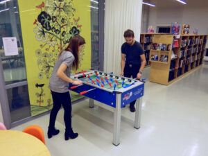 „Koju laenutame peale raamatute näiteks spordivahendeid. Alustasime selle populaarse teenusega spordiaastal. Inimestel on huvi proovida enne ostmist näiteks sammulugejat või pulsikella, liikumis- või seltskonnamänge. Meil on raamatukogud ka koolide läheduses või koolidega samas majas. Kui õpilased tahavad vahetundi aktiivselt sisustada või pärast tunde sportida, siis on neil hea võimalus raamatukogust vahendeid laenata. Mõnes raamatukogus saab mängida lauatennist ja koroonat.”