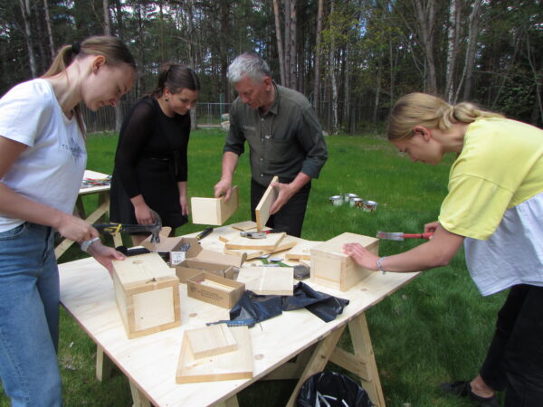 Pesakastide meisterdamise õppepäev toimus 14. mail Eesti vabaõhumuuseumi puitehituse kompetentsikeskuse õuel, kuhu koolide nelja-viieliikmelised grupid saabusid tunniajaste vaheaegadega.