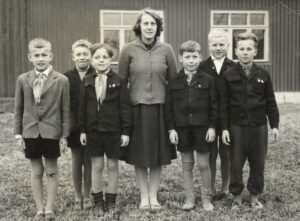 Tulevane tuntud joonisfilmitegija ja kunstnik Heiki Ernits (vasakult esimene) koos klassivendadega Kurtna algkooli 4. klassis. Keskel seisab tema ema, õpetaja Helgi Ernits. Foto on tehtud 1964. aastal.
