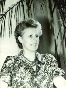 Foto õpetaja Mare Rossmannist on tehtud 1980. aastatel õpetajate nõupidamisel.