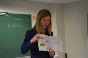 Esiteks on õpilased hästi vahetud. Kui neile midagi meeldib, ütlevad nad selle julgelt välja, ja kui ei meeldi, samamoodi. Nad on õppimisest huvitatud ja ma ei pea tunnis tegelema kasvatustööga, vaid saan pühenduda keele õpetamisele. Lisaks on võõrkeeleõpetajal see eelis, et 15 õpilasega rühmas jõuab igaühega rohkem tegelda ning õpilase arengut on kiiremini näha kui emakeeletunnis.