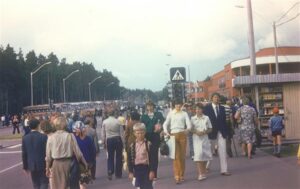 Meie olime leidnud koha vahetult enne Pirita jõge, velodroomi ja Pirita maantee vahelisel rohealal. Ligemale miilitsad inimesi ei lasknud ja ainult sealt oli lootus oma silmaga näha, kuidas olümpiatõrvik meist mööda liigub ja siis all väikesel platsil tuli süüdatakse.