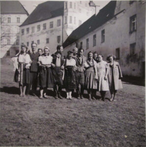 Eestist pärit järelümberasujad Lõuna-Saksamaal Neresheimi kloostri õuel 1941. aastal. Foto: erakogu