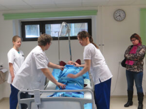 Sama õppeaine raames käivad tervishoiu kõrgkooli õppurite-õppejõudude käe all õhtuti vajalikke oskusi õppimas ka omaste hooldamise ühenduse liikmed.