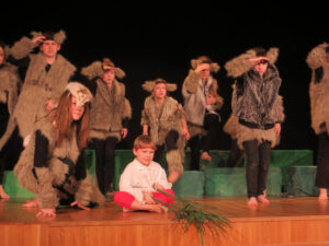 Gregor Jeetsile, ühele kolmest Mowgli osatäitjast, oli see oma koolis juba kolmas etendus samade lavastajatega. Et tema Mowgli astub üles tüki lõpupoole, jõudis ta ka kooripartiid laulda. „Igaüks pidi oma osast ikka ise läbi närima, aga spetsialistid olid abiks. Turovski rääkis, kui targad loomad on ahvid tegelikult, erinevalt etendusest. Margus Jaanovits käis teatriööl õpetamas.”