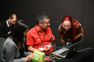 Maria Malozjomov: „Meie eesmärk oli näidata, kuidas oleks võimalik Makey Makeyt kui põnevat leiutamiskomplekti integreerida õppetöösse. Kõigepealt tutvustasime, mis üldse on Makey Makey. Seejärel rääkisime enda eTwinningu projektist, mille mõte ongi õpilastega koos otsida rakendust Makey Makeydele. Siis said õpetajad ise käed külge panna ning oma projekte välja mõelda. Osalejad nägid, et tegu on lihtsa, kuid põneva vidinaga, mida saab kergesti lõimida õppetöösse.