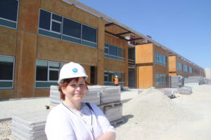 Järveküla kooli direktor Mare Räis oma koolimaja ees. Hoone projekteeris arhitektuuribüroo SWECO. Vastutav arhitekt on Ahti Kooskora. Hoone sisearhitekt on Margit Teikari, kooliümbruse kujundaja maastikuarhitekt Piret Kirs. Ehitab Nordecon. Foto: Raivo Juurak