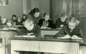 Kuna aeg oli väga vaene, oli puudus kõigest, ka õpikutest. Me, lapsed, läksime augustis ööseks koolimaja keldrisse istuma ja ootama, et saaks hommikul kooliraamatuid osta – kes ees, see mees. Raamatute järjekorras oli muidugi põnev öö läbi passida, kõigile neid aga ei jätkunud. Neile, kes õpikutest ilma jäid, andsid vanemad õpilased oma eelmise aasta raamatud. Need nägid aga juba kapsad välja ning kõik tahtsid ikka tutikaid.”