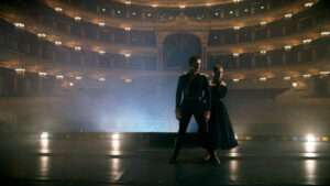 Stseen Ruslan Skvortsovi ja Kristina Kretovaga Moskva Suure Teatri balletist „Meie aja kangelane”.Foto: PathÉ Live, Pierce Jackson