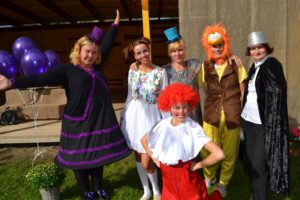 Ja siis astusid laulu saatel lasteaia õuele lõvi ja lõvitaltsutaja, klounid; köielkõndija ning võlur (kõik oma ala professionaalid – Kannikese õpetajad) .
