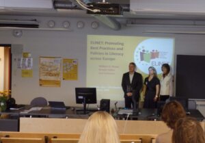 Euroopa lugemispoliitika kujundamise võrgustiku ELINET etteaste Turu konverentsil. Foto: erakogu.