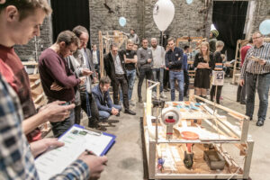 Žürii hindab Kehra gümnaasiumi masinat, mis osutus võidutööks. Foto: Anneli Ramjalg