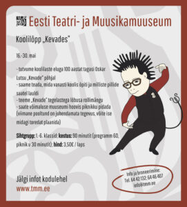 Oma ekspositsioonis räägime näiteks Oskar Lutsu „Kevade” kaudu kooliharidusest, sest muusika on ajalooliselt mänginud olulist rolli õppetöös. Nõnda näeb juba tuttavate lookillukeste abil muuseumi aardeid isemoodi valguses. „Kevade” on ju nii palju Eesti lavalaudadelt läbi käinud, et teatrilukku jäetud süvend on märkimisväärne. Imeliku kannel ja õpetaja Lauri viiul on aga lausa ikoonilised instrumendid. Samuti on unustamatu Arvo Kruusemendi filmi muusika, mis Veljo Tormise loodud.