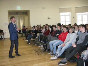 Kirjanik rääkis aktuaalsetel teemadel avaralt ja vabalt. Oli näha, et talle meeldis suhelda gümnasistidega. Kõik, kes tahtsid oma küsimust esitada, said sõna.