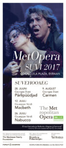 Kaheksandat suve järjest jõuavad Forum Cinemase kinodesse Tallinnas ja Tartus Metropolitan Opera suveooperite meistriteosed. Suvehooaeg kestab 28. juunist 9. augustini, selle aja jooksul näeb kokku nelja maailma tippheliloojate Georges Bizet’ ja Giuseppe Verdi ooperit. Ooperid jõuavad kinolinadele kolmapäeva õhtuti kell 19.00.