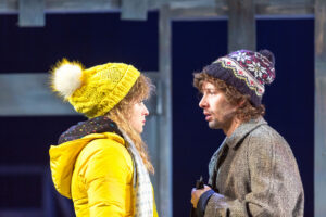 Näitlejad Kati Ong ja Sten Karpov lavastuses „Peaaegu armastus”. Foto: Siim Vahur