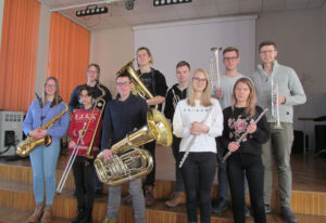 Osa Pärnu noorteorkestrist: esireas Emily Urla, Maria Jerilova, Mihkel Saar, Aneth Kond ja Birgit Padul, tagareas Jaanika Karjus, Jaak Soa, Gert Janson, Alan Oper ja Raimond Vendla. Fotod: Annika Poldre