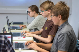 Õpilased lahendavad TÜ teaduskooli teaduslaagris informaatika ülesandeid. Foto: TÜ teaduskool / Mihkel Kree