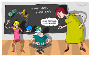 Direktori kirjakasti laekub seitsmenda klassi lapsevanemate ühine avaldus. Mitu lapsevanemat on tähele pannud, et nende lapsed on hakanud inglise keelt vihkama ja ka hinded on selles aines kehvaks läinud. Kui lastelt lähemalt uuriti, selgus, et õpetaja on tundides irooniline ja sarkastiline – „mürgine“, nagu ütlevad lapsed – ning hindab kirjalikke töid ebaõiglaselt: tal on oma lemmikud ja teised, keda ta ei salli. Kui mõned õpilased on avaldanud soovi oma hindeid parandada, on õpetaja neid naeruvääristanud ja öelnud, et ega õppima pea hinnete, vaid ikka teadmiste pärast. „Raske õppustel, kerge lahingus! Kui mina teid rangelt hindan, siis saate pärast palju lihtsamalt gümnaasiumi sisse,“ on õpetaja väitnud.