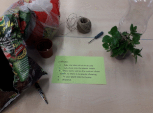 Tunnis toimus töö neljas jaamas. Ühes jaamas töötati sõnavaraga, teises otsiti internetist huvitavaid ideid taaskasutuse kohta, kolmandas istutati plastikpudelitesse kodust kaasa võetud toataimi ja neljandas sõnastati keskset ideed ja uurimisküsimusi.