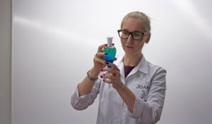 Kolmandat aastat käib Joana Jõgela ka Treffneri gümnaasiumis loodusklassi praktikume juhendamas. Ta on koostanud praktilise keemia kursuse, milles tehakse eluga seotud katseid, näiteks määratakse toiduvärvi sisaldust Tarhunis või C-vitamiini oma apelsinimahlas.