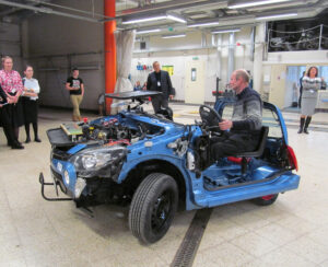 Vana-Vigala autoõpetaja Heiki Sassian, kes oma koolis ehitatud stendautoga töökojas ka ringi sõitis, rääkis, et sellega saab teha kõikvõimalikke autoelektroonika ülesandeid, tekitada ka vigu. „Stend on multifunktsionaalne ja me arendame seda edasi,“ rääkis Sassian. Edaspidi saab sellel kontrollida ka kõiki muid elektriseadmeid. Õpetaja kiitis lahendust, kus kõigile anduritele pääseb ligi, kõik on nähtav ja niimoodi väga mugav õpetamiseks ning õpilastele atraktiivne. „Demonstreerisin ohutust: kui äkki läheb liikuma, siis sureb kohe välja. Kõik peab olema turvaline,“ selgitas autoõpetaja, miks ta masinaga autotöökojas tiirutas.