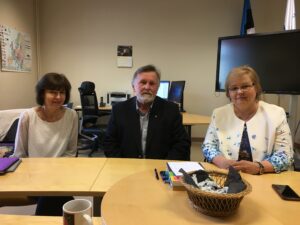 Miina Härma gümnaasiumi õpetaja Ivika Hein, Tartu Jaan Poska gümnaasiumi direktor Helmer Jõgi ja õpetaja Vaike Rootsmaa. Foto: Joanna Laast