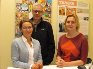 Tähekest tulid sünnipäeval õnnitlema kirjanikud Jaan Rannap, Ira Lember ja Olivia Saar, kes on ajakirjaga seotud olnud selle loomisest alates. Foto: Harri Rospu