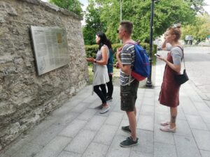 Siis algas mängu väljatöötamine ehk jalutamise, lugemise ja guugeldamise periood. Millised kohad vanalinnas peaksid eesti keele õppijal marsruudile jääma? Milliseid küsimusi esitada, et vastus oleks leitav majadele kinnitatud tahvlitelt nii hommikul kell kaheksa kui õhtul kell seitse? Millised küsimused eesti keele õppijat motiveerivad ja missugused arendavad tema keelt. Riigikogu hoone akende loendamine? Ei ole väga inspireeriv. Aga missugused valitsejad on resideerunud Toompeal 800 aasta jooksul? Vastuse leiab eestikeelselt infotahvlilt.