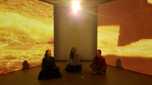 Näitusesaalis mediteerimine aitab aja maha võtta ja süveneda, märgata nüansse, leida uusi seoseid, tulla peast südamesse, kogeda teoseid sügavamalt, märgata nende kaudu iseendas tähelepanuta jäänut.