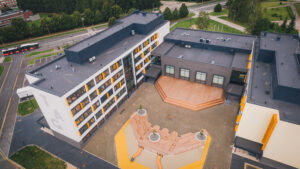 Koolimajale tuli juurde üks korrus – keldriruumid said suured aknad ja sealsegi pinna sai tööks kasutusele võtta. Esimestel nädalatel hõlbustab majas orienteerumist seegi, et paarisarvulised korrused on laimirohelised ja paaritud oranžid.