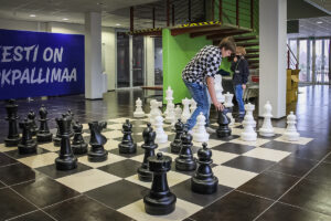 Pärnumaa malenoorte seas oma tulemustega tippu tõusnud Mai kooli õpilased, 13-aastane Rondo Mikko ja 10-aastane Hans-Georg Köösel seadsidki südapäeval malenuppe paika spordihallis malelaua mustris mustvalgele põrandaruudustikule.