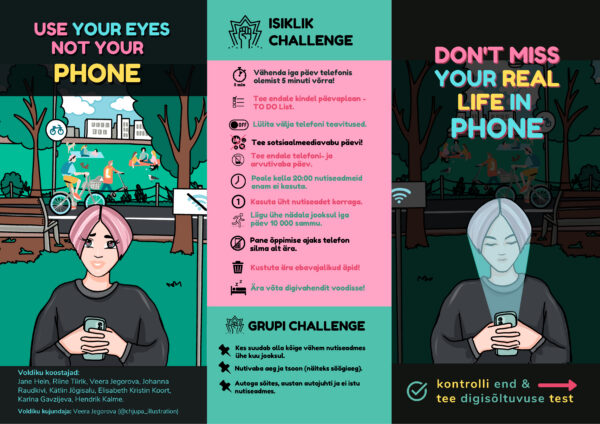 Lühitutvustus. Infovoldik on pilkupüüdev, noortepärane ning teismelisi kõnetav. Infovoldik võimaldab noortel teha digisõltuvuse testi ja läbida isikliku väljakutse nutivahendi kasutusaja piiramiseks. Lisaks on võimalus teha väljakutse terve klassiga. Infovoldik annab ülevaate, mida teeb digivahendite liigne kasutamine teismeliste ajuga ning kuidas mõjutab sinine ekraanivalgus söögiisu ja und. Lisaks selgitatakse infovoldikus mõisteid „nomofoobia“, „multitasking“, „molutamine“. Infovoldikus olev tegevuste kalender annab võimaluse valida endale sobiv asendustegevus ning vähendada seeläbi digivahendis veedetud aega.