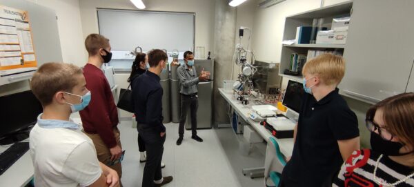 Laboreid tutvustasid TLÜ loodus- ja terviseteaduste instituudi teaduslaborite koordinaator Krinsli Pius ja analüütilise biokeemia eriala doktorant Amal Dharmapriya, kes tutvustas külalistele laboreid inglise keeles.