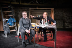 Andres Raag ja Peeter Tammearu lavastuses „Emigrandid“.