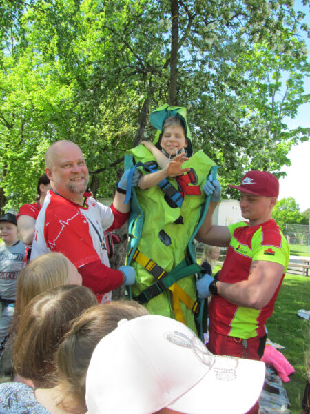 Päästeauto juures oli pidevalt lasteparv. Vaid siis, kui õpilasrühmad vahetusid ühe teema juurest teise juurde, tekkis päästjatel paus. Pärnu päästekomando rühmapealik Riho Linnas sõnas, et nad räägivad 2. klassi lastele ohutusest. Lisaks autole oli neil ohutuslaud stendi, piltide ja ohtlike esemetega, nagu küünlad, elektrijuhtmed jm. „Me räägime, kuidas hoonest ohutult välja pääseda, et mitte suitsulõksu jääda,“ tõi Linnas näite. Ohutuslaua juures said lapsed mõistatada, mis on piltidel valesti, kuulsid, miks ei tohi piimapakke ahjus põletada, jm tarkusi.