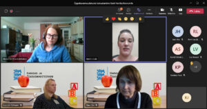 Ministeeriumi ja haridusfoorumi ühine arutelu veebis. Dialoogi peavad Maria Erss, Merlin Linde, Hele Liiv-Tellmann ja Mare Oja. Foto: kuvatõmmis