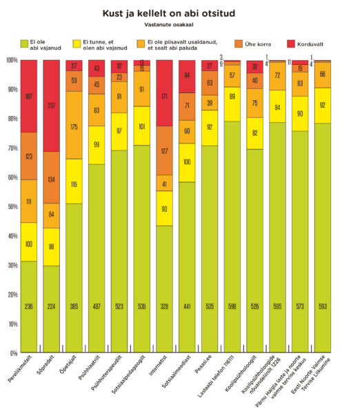 Kõige enam otsivad vaimse tervise probleemide puhul abi Pärnu linna koolides õppivad tüdrukud-gümnasistid. Abi aga ei otsita enamasti põhjusel, et ei tunta end abi vajavat või arvatakse ise hakkama saavat. Samas tunnistati, et ei julgeta kellegi poole pöörduda või pole kellegagi rääkida. Kõige rohkem otsitakse probleemide puhul abi internetist, pereliikmetelt või sõpradelt.