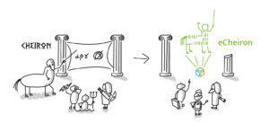 Moonika Oll: Kuna oleme Katriniga ajalooõpetajad, siis tuli meil nime mõeldes meelde Vana-Kreeka kentaur Cheiron, kes õpetas müütilistele kangelastele ravikunsti, jahipidamist, ratsutamist, relvade valmistamist ja muusikat. Tema kuulsaim õpilane oli Achilleus. Muuhulgas leiutas Cheiron lüüra. Nüüd õpetab meie loodud digitaalne eCheiron tänapäeva kangelasi ehk õpetajaid.