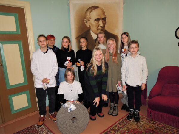 Õpetaja Raili Leesalu oma õpilastega F. R. Kreutzwaldi mälestuspäeval muuseumis. Foto: Malle Avans