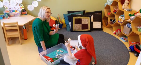 Minu juures käib päris palju ka selliseid lapsi, kes seoses kõne hilistumisega veel ei räägi või kelle puhul on teada, et tal korrektset kõnet ei tulegi. Meie tegutsemises ei muuda see midagi, sest mänguteraapia seansil asendavad lapse sõnu mänguasjad ja kõnet mäng. Kui laps ei soovi, ei pea ta minu juures rääkima, sest räägin mina. Terapeudina peegeldan oma kehakeele ja sõnadega lapsele tagasi mängus toimuvat, jälgides lapse mängulist tegevust. Püüan aru saada ja mõista seda, mis toimub lapse hinges.
