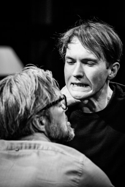 Florian Zelleri „Poeg“ Ott Aardami lavastuses on Theatrumi laval 15. ja 16. veebruaril. Pierre (Andri Luup) ja Nicolas (Jass Kalev Mäe). Foto: Ülar Mändmets
