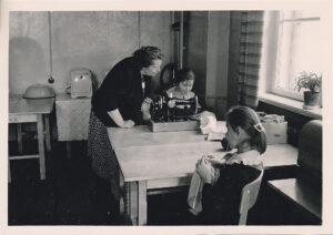 Õpetaja õpilastega Tartu 4. keskkooli käsitööklassis, 1961.Foto: Eduard Selleke. Tartu Linnamuuseumi kogust