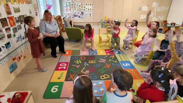 Rutiinne hommikuring. Näen, et kõik lapsed oskavad öelda eesti keeles, mis nädalapäev on täna, homme, ülehomme, eile jne. Eesti keeles osatakse öelda ka seda, mis aastaaeg ja kuupäev on, missugune on ilm, kas tuju on hea ning mis on selle hea tuju põhjus jne. Lisaks ütlevad lapsed eesti keeles, kui palju on rühmas poisse ja tüdrukuid ja kumbi on rohkem, tehes tahvlile poiste ja tüdrukute arvu vahele <-märgi.