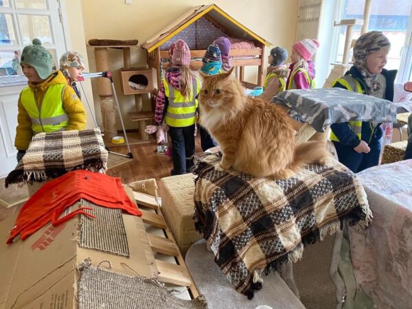 Tartu Ristikheina lasteaia lapsed kogusid toitu ja mänguasju koduta kasside varjupaigale. Fotod: erakogu