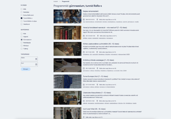 Vaata täpsemalt rahvusraamatukogu programmide broneerimise, õppematerjalide ja mängude kohta siit: www.rara.ee/programmid/.