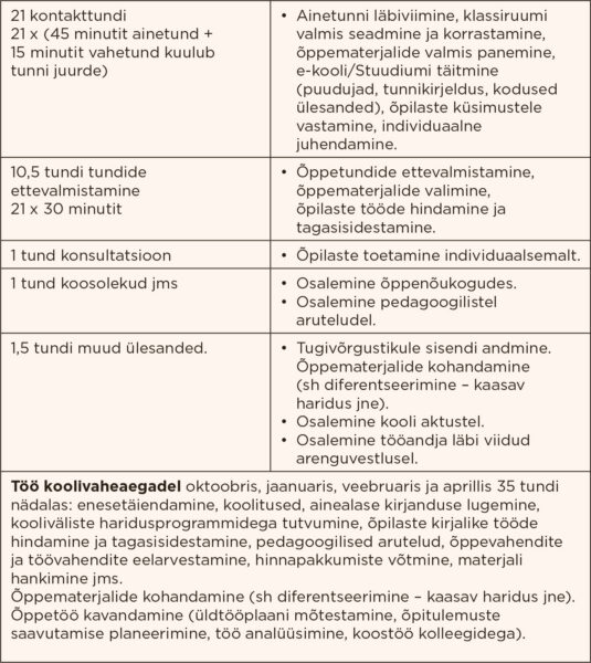 Haridustöötajate liidu esimees Reemo Voltri ütleb, et täiskohaga töötava õpetaja tööaeg on seaduse järgi 35 tundi nädalas. „Selle tööaja eest peab õpetaja saama minimaalselt õpetaja töötasu alammäära, mis käesoleval aastal on 1820 eurot,“ lausub ta. „Tööülesanded peavad mõõduka tempo ja intensiivsusega töötades nimetatud tööaja sisse ära mahtuma.“