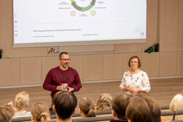 Nii tuligi augustis innukalt tööle asuda. „Vahepeal mõtleme, et see kõik on võimalik vaid Viimsi Gümnaasiumis,“ räägivad nad kooli tuge mainides. „Jalutasime augustis õppejuhi kabinetist mööda ja laususime nii muuseas seal ukse vahel seistes, et hakkame koos kursust andma,“ kirjeldavad nad ühise õppetöö ametlikku algust. Nad tõdevad, et oleks neilt kohe kogu kursuse täpset ainekava nõutud, oleks hoog enne algust raugenud. „Teadsime kursuse alguses esimese kolme nädala plaani,“ möönab Kristjan, lisades, et struktuur oli paigas, aga materjalid loomata. Ivi selgitab, et eeltööna olid nad möödunud kevadel vaadanud põhjalikult läbi mõlema kursuse sisu, et märgata, millised teemad kahes aines kattuvad. Selgus, et neid oli omajagu, näiteks ökoloogia, keskkonnakaitse, põllumajandus ja keskkonnakaitse, energeetika ja keskkonnakaitse, metsandus ja keskkonnakaitse. „Keskkonnakaitse ja kestlik areng on märksõnad, millest juhindusime,“ täpsustab Kristjan. Õppekorraldusjuhile edastasid nad väga konkreetse soovi tunniplaani osas: nädala esimene tund olgu ühistund, kus õpetajad saavad olla koos auditooriumis kahe klassi ees korraga, järgnevad igale klassile üks bioloogia- ja üks geograafiatund ning reedel üks iseseisva töö tund. Vastu kõlas selge ja usaldusest pakatav: „Olgu!“ Seejärel koostasid nad veebis Draw.io keskkonnas struktuuri, kus joonistusid välja tunnijaotusplaan ning nädala teemad ja tundide sisu. Kui nädala esimene kahe õpetajaga ühistund oli pigem loeng, siis reedene iseseisva töö tund andis võimaluse kümne nädala jooksul läheneda kursuse teemadele loomingulises võtmes nii üksi, paaris- kui ka rühmatööna. Nädala keskele jäänud ühes bioloogia- ning ühes geograafiatunnis tegelesid nad teema raames spetsiifilisemalt ühe eriala sisuga. Nii valmis skelett, mida nad kui ühest suust kinnitades ei kavatse muuta. „See tõestas kohe esimesel aastal oma kvaliteeti,“ nõustub Ivi. Nad usuvad, et sellist neljast tunnist koosnevat nädalaplaani ja teemade järjestust saaks ka teistes koolides proovida, kui kolleegidel on huvi katsetada. „Meie oleme valmis oma kogemust jagama,“ lubavad nad.