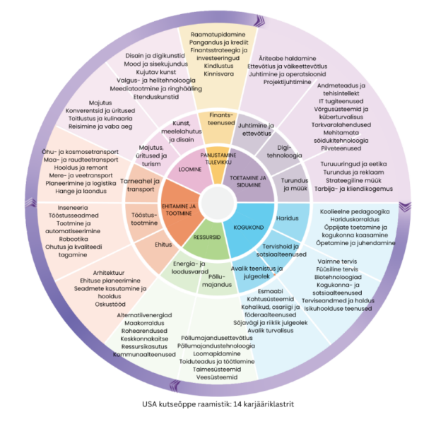 Erialade raamistamiseks on USA-s 14 karjääriklastrit ja nende alla liigituvad omakorda 72 karjääriteed (vt joonist „14 karjääriklastrit USA kutseõppes“). Iga karjääritee kirjelduse juures on juhised, milliseid üld- ja erialaspetsiifilisi oskusi õppija selle eriala omandamisel arendab. Nii saab keskkoolis alustada õpinguid mingi kutseala omandamiseks ning kogutud ainepunktid ehk läbitud kursused lähevad arvesse kutseõpingute jätkamisel keskharidusjärgses õppes (tehnikakolledžis, ülikoolis vms). Näiteks saab alustada arhitektuuriõpinguid juba põhikoolijärgses kutseprogrammis ning liikuda pärast keskkooli edasi kutse- või kõrgkooli.